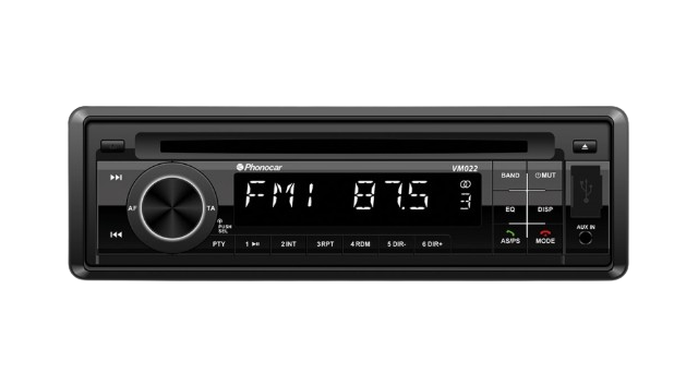 Autoradio 1 DIN con Bluetooth, ingresso USB e AUX.